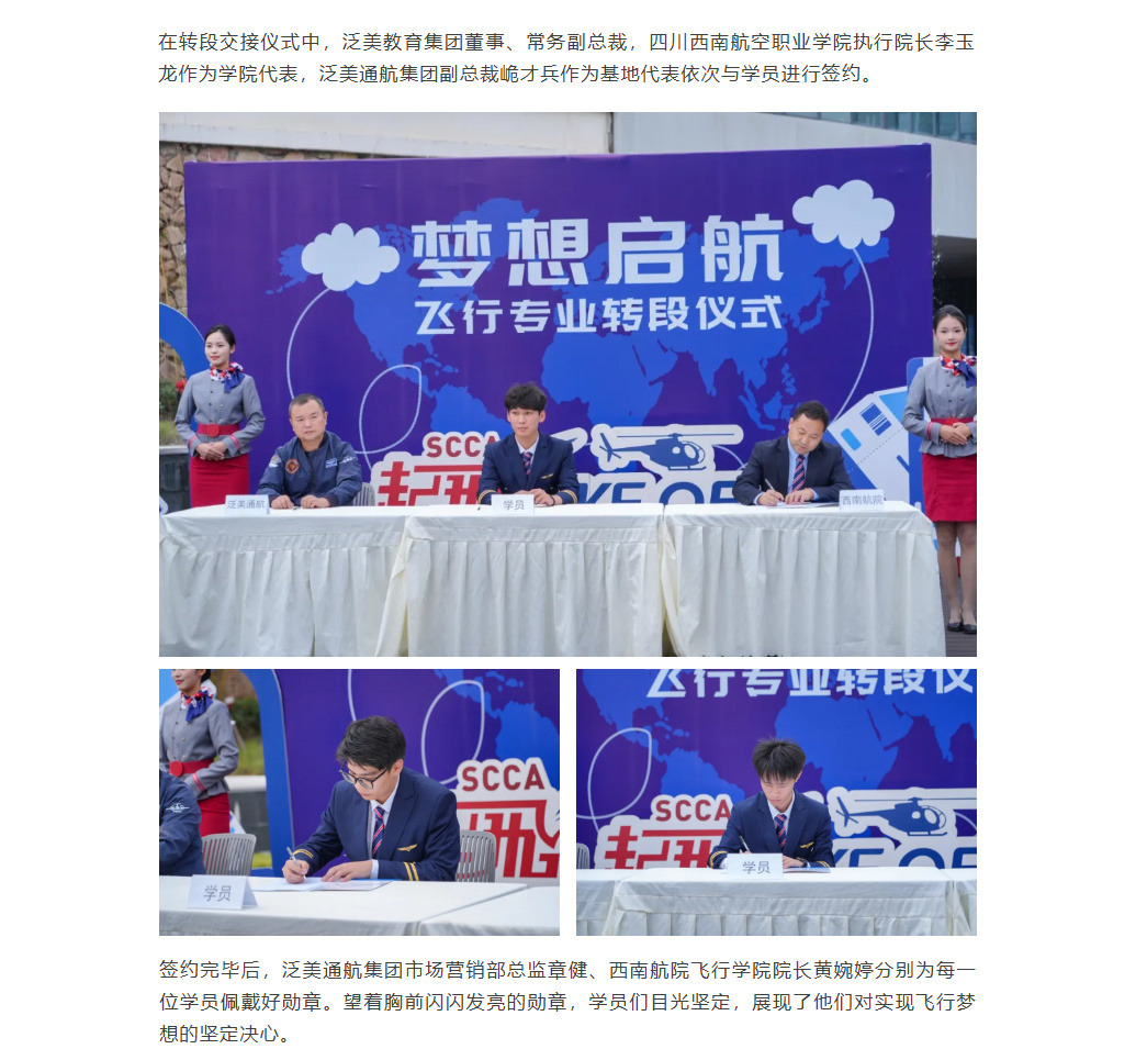 泛美通航 自由飞翔!2023级飞行专业转段交接仪式顺利举行